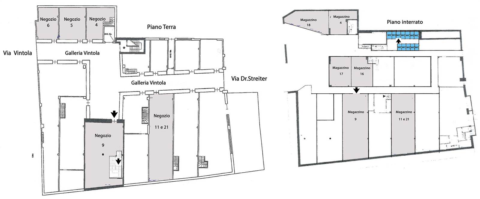 Wir bieten zum Vermieten verschiedene Geschäfte und Büros in der renommierten Vintler Galerie, im pulsierenden Herzen des historischen Zentrums von Bozen. Die Immobilien, in unterschiedlichen Größen, befinden sich im Originalzustand und müssen renoviert werden, ideal für Ihre gewerblichen oder professionellen Tätigkeiten.