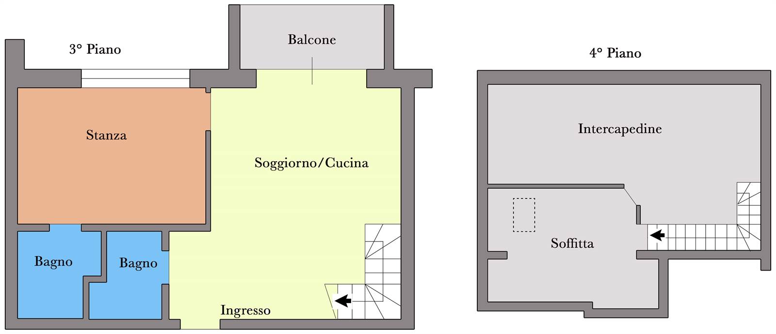 Die Wohnfläche beträgt ca. 50 m² und setzt sich wie folgt zusammen: Wohnbereich mit Kochnische, Schlafzimmer mit Bad en suite, zusätzliches Zimmer im Dachgeschoss sowie zweites Badezimmer mit Dusche.