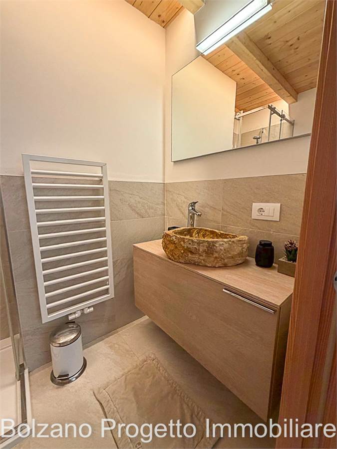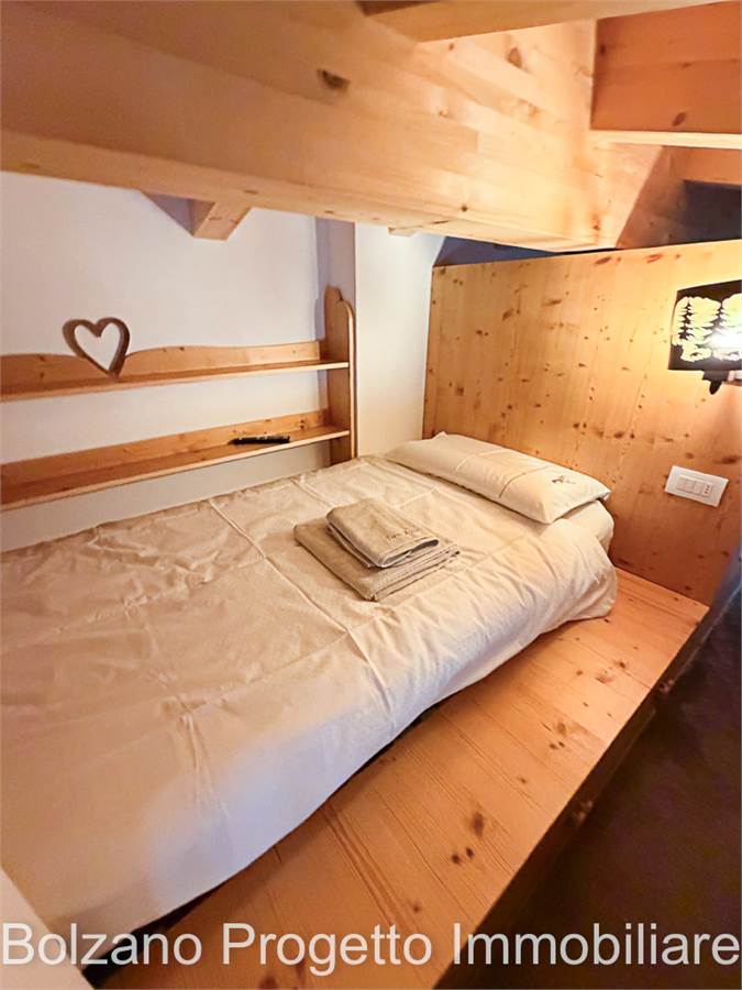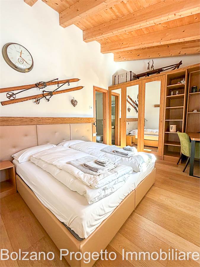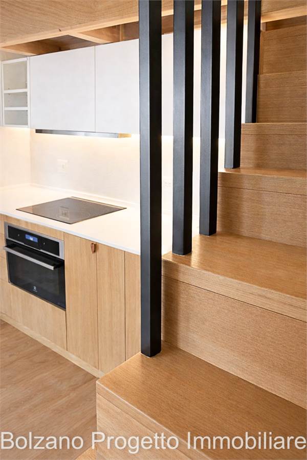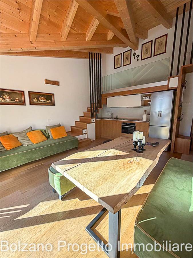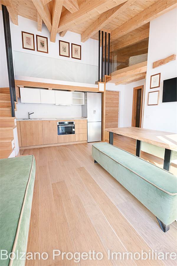Der helle und gut organisierte Wohnbereich umfasst ein Wohnzimmer mit maßgefertigter Kochnische und Zugang zum Balkon mit Blick auf die Dolomiten (UNESCO-Weltnaturerbe). Der Wohnraum gewährleistet Privatsphäre und hohe Wohnqualität zu jeder Jahreszeit.