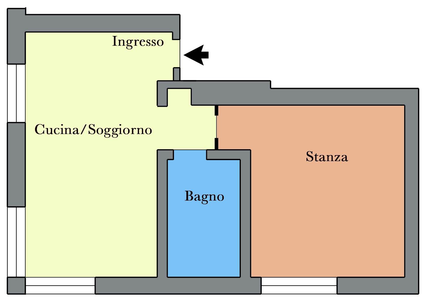 Die Einheit befindet sich im Hochparterre und besteht aus einem Wohnbereich mit Kochnische, einem Schlafzimmer und einem Badezimmer.