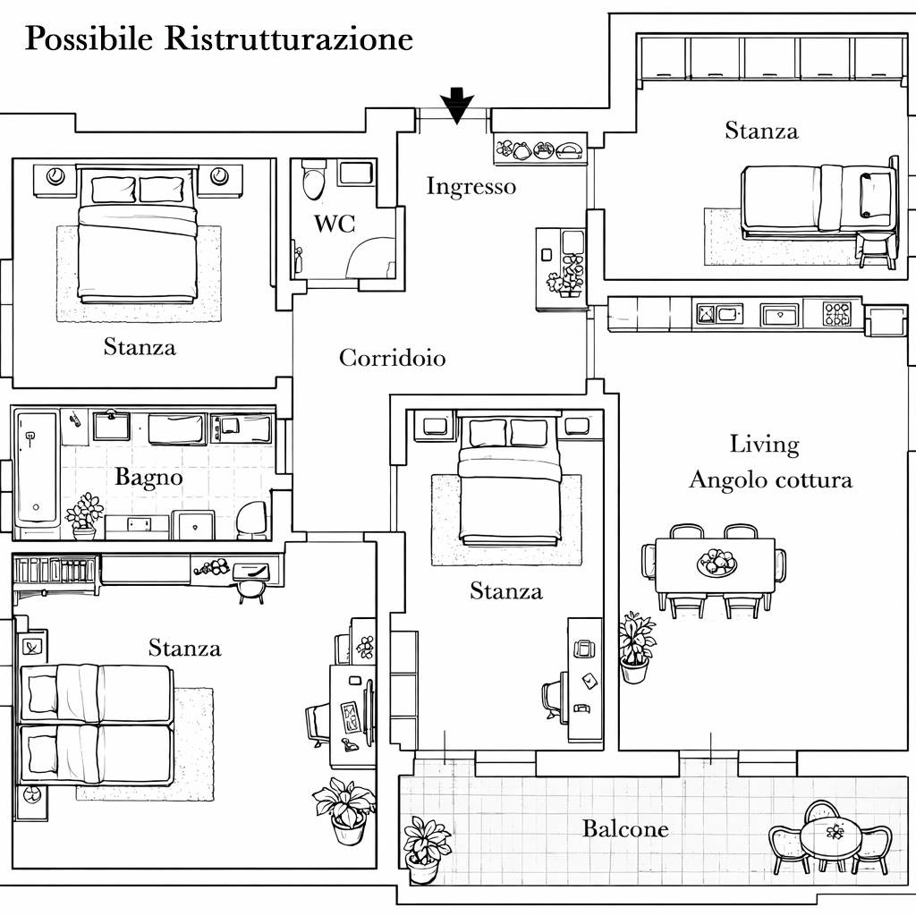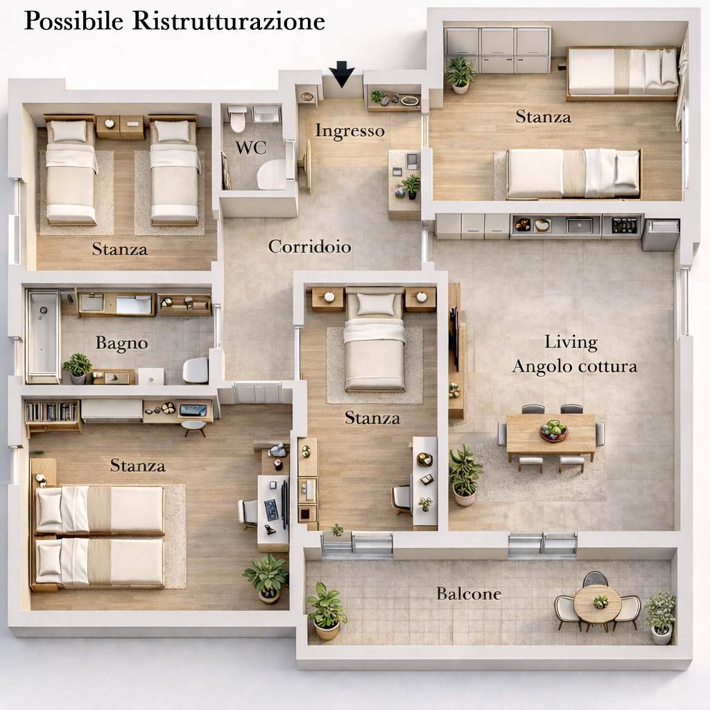 ES IST MÖGLICH, DURCH EINE SANIERUNG UND NACH TECHNISCHER PRÜFUNG DER MACHBARKEIT, AUS DER EINHEIT 4 SCHLAFZIMMER, 2 BADEZIMMER UND EINEN WOHNBEREICH MIT KOCHNISCHE ZU REALISIEREN.