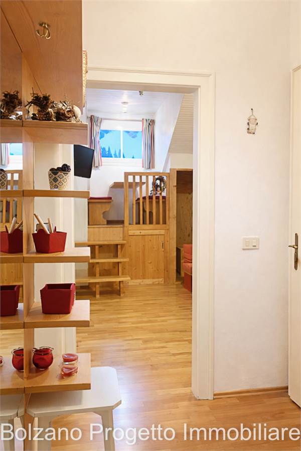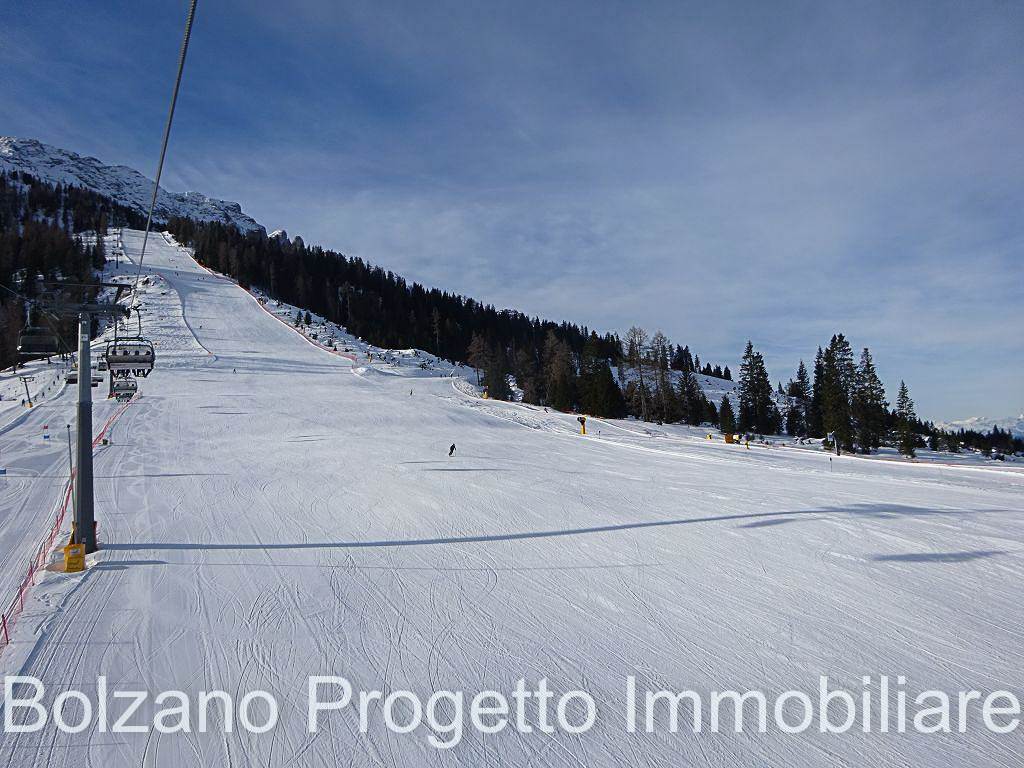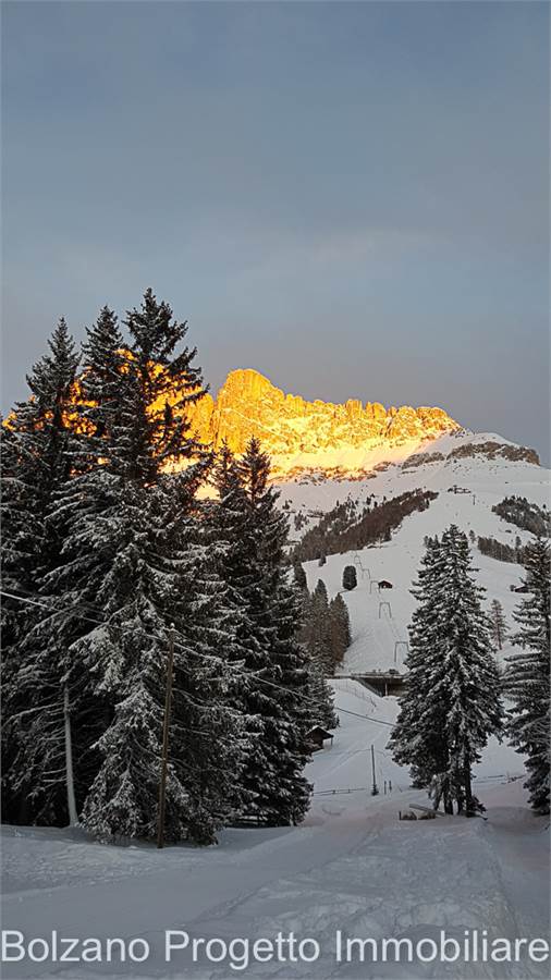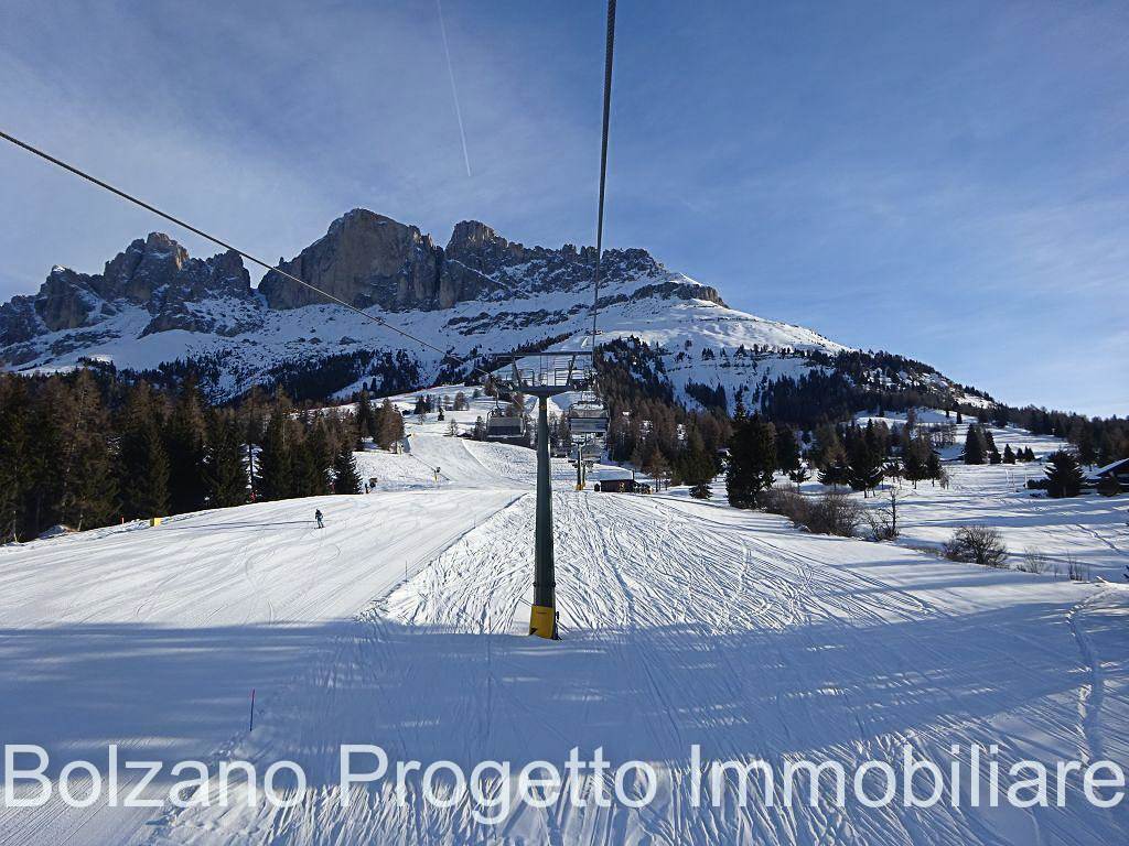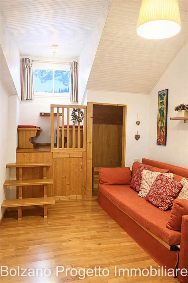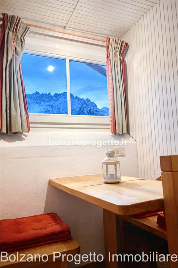Zwischen Latemar und Rosengarten, innerhalb des Wohnhauses Grand Hotel Carezza, wird ein renoviertes Studio-Apartment im fünften Stock angeboten.