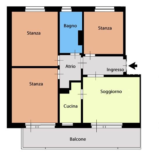 Proponiamo in zona interna e tranquilla, Luminoso Quadrilocale in affitto di mq 103,00 lordi sito al 2° piano senza ascensore. L'immobile si presenta in buono stato ed è composto da un ingresso, soggiorno con cucinino e balcone abitabile, tre stanze da letto, bagno finestrato, cantina e Garage.