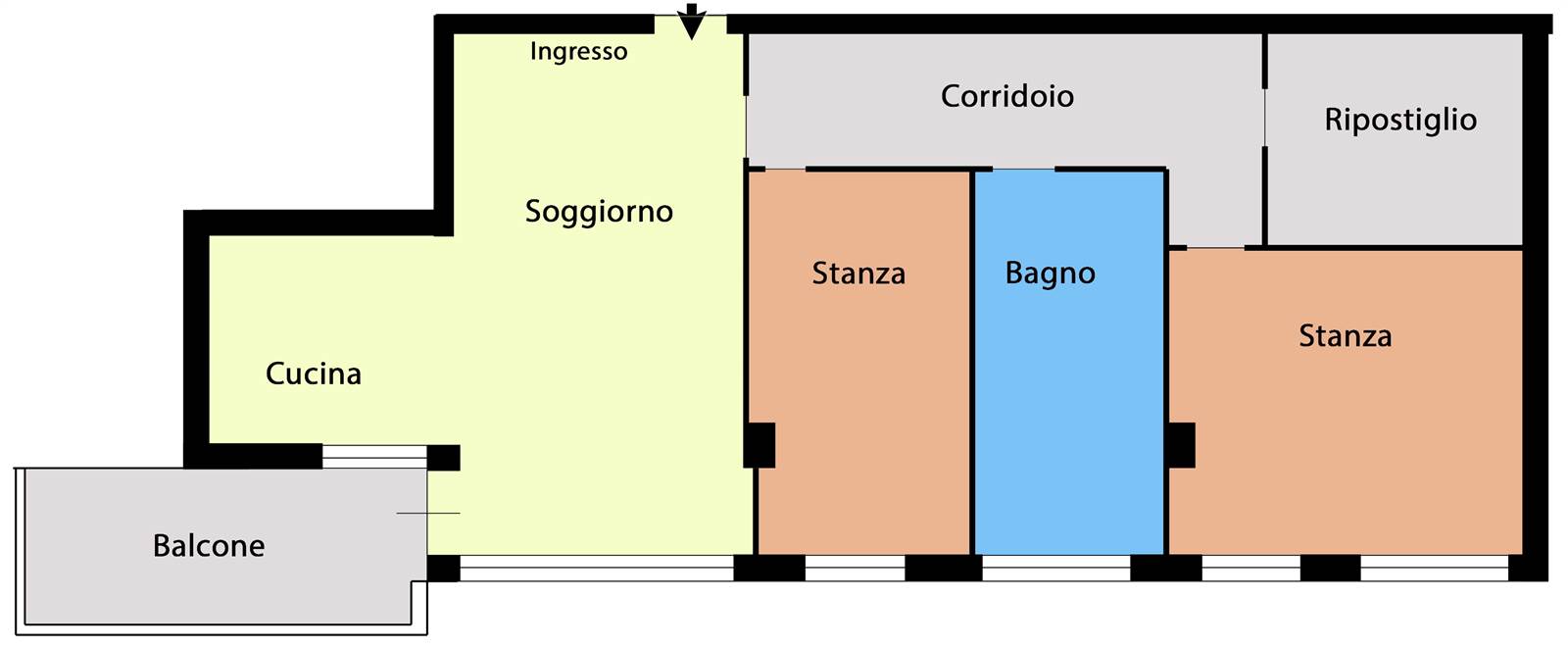 Si compone d'ingresso, Ampio soggiorno con zona cucina integrata e terrazzino abitabile, due grandi camere da letto matrimoniali, bagno finestrato con Cabina Sauna Relax e grande ripostiglio/lavanderia.