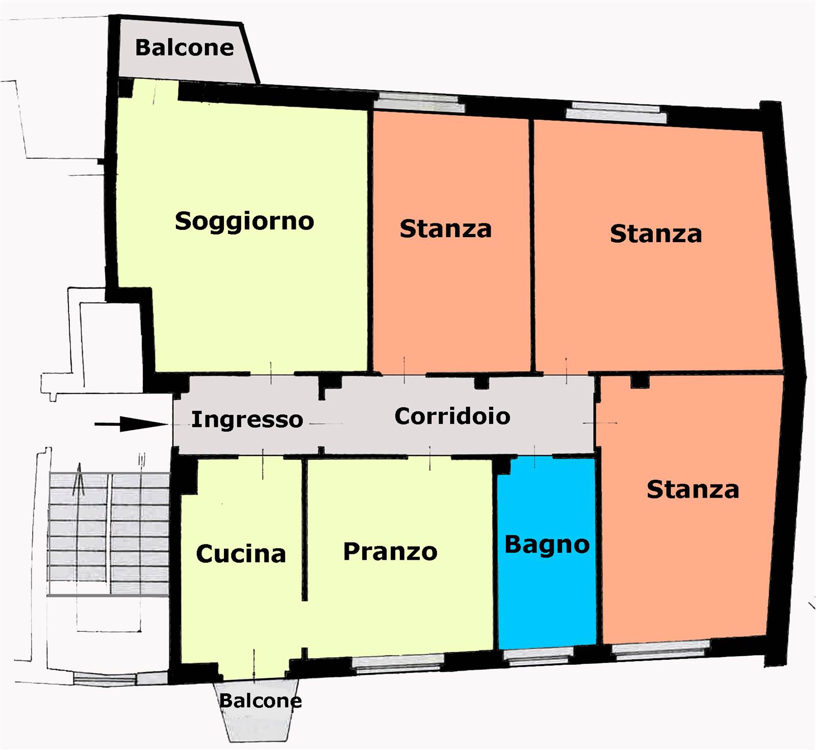 E' composto da ingresso, grande soggiorno, cucina più sala da pranzo, tre grandi stanze da letto, bagno finestrato e due balconi, e necessita di ristrutturazione detraibile al 50%.