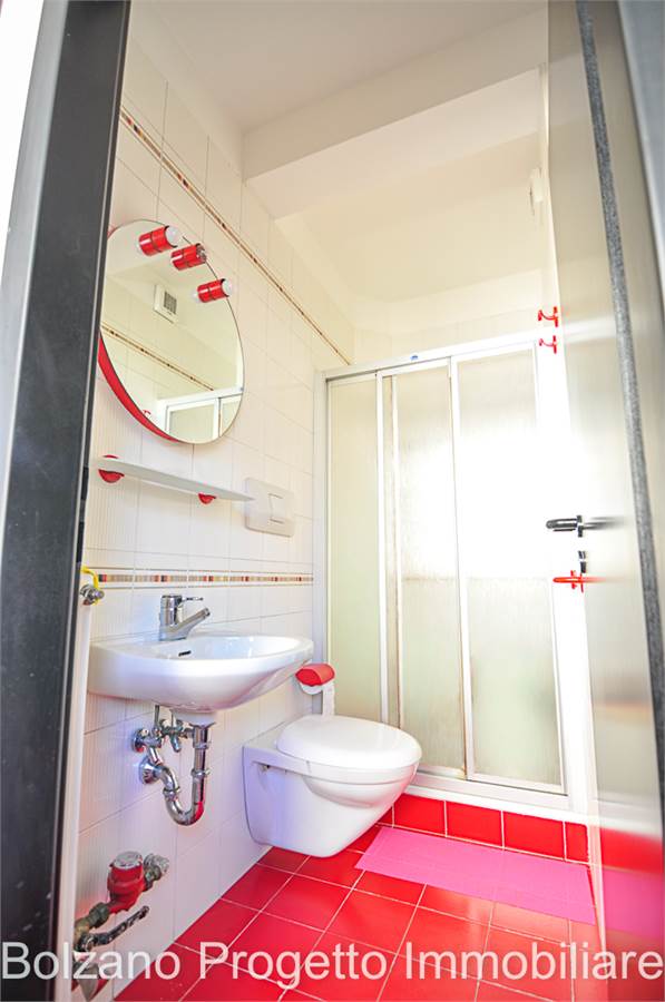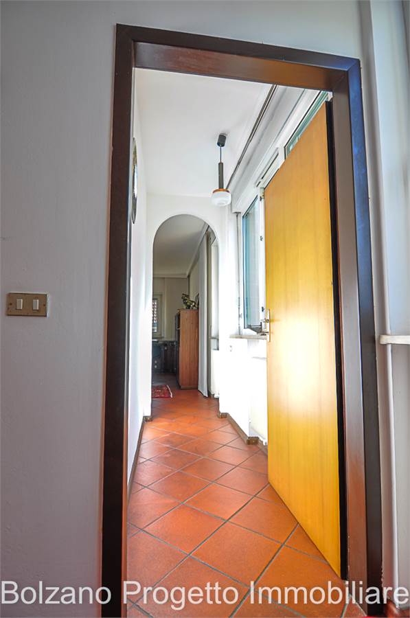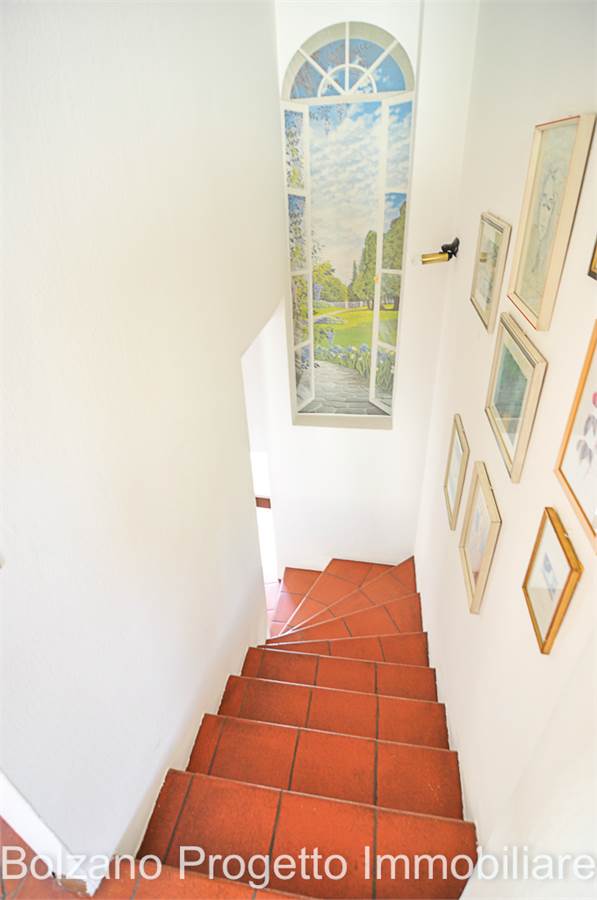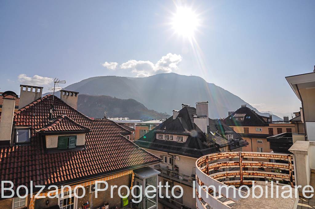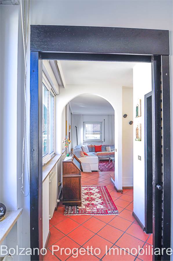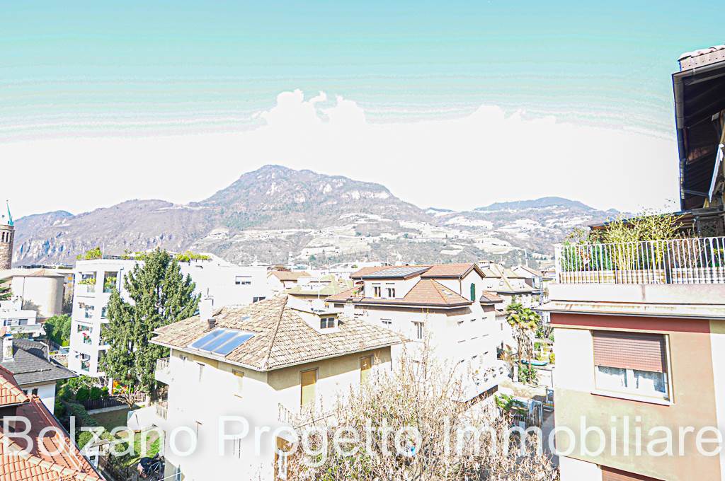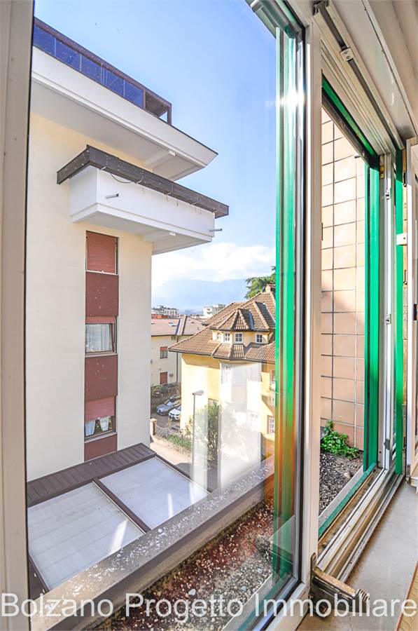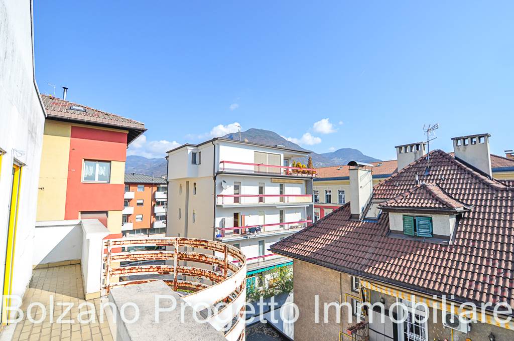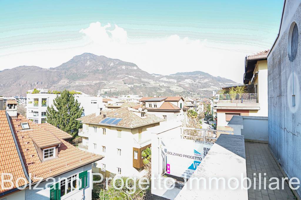 All’ultimo piano si sviluppa un balcone che gira lungo tutto il perimetro dell’appartamento, dal quale si gode una piacevole vista aperta sulla città di Bolzano e sui tetti del quartiere Gries.