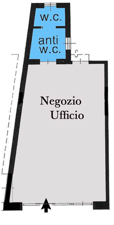 Il locale ed esposto a Est/Ovest ed è composto da un ingresso, negozio, anti-wc e un wc.
