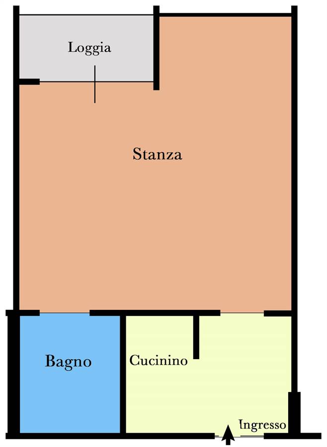 Composizione: ingresso con zona cottura e armadiatura a muro, bagno finestrato, soggiorno / zona notte, balcone (poggiolo).